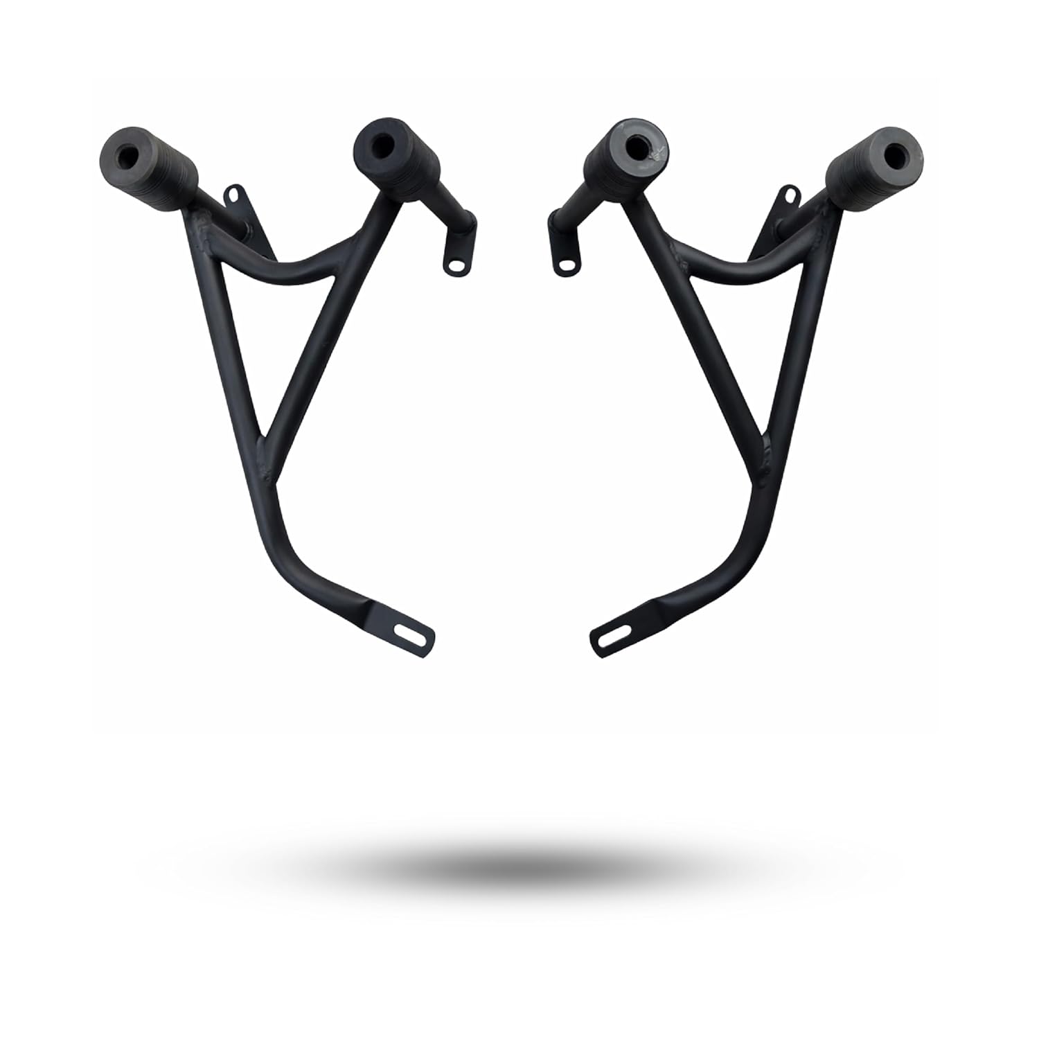 • R.J.VON - Bajaj Pulsar NS125 (Black) Leg Guard With Slider Complete Assembly,The metal used is of heavy gauge making the guard very strong and Heavy strong Slider giving the ability to withstand heavy impacts thereby protecting your Bajaj Pulsar NS125 (Black) bike, Easy installation (install by professional), Heavy Duty Crc Construction,Mig Welded With Both Side Leg guard and 2 Pcs Slider With Complete Fitting, Robust construction: designed with premium grade metal tubing, the offered chrome-plated Slider that adds style to function Bajaj Pulsar NS125 (Black).
