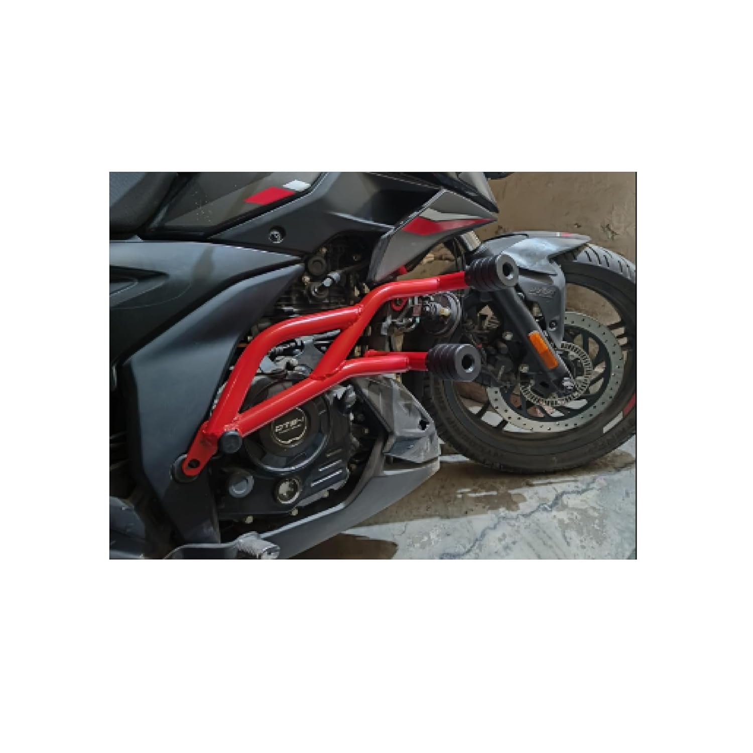 • R.J.VON - Bajaj Pulsar N250 (Red) Leg Guard With Slider Complete Assembly,The metal used is of heavy gauge making the guard very strong and Heavy strong Slider giving the ability to withstand heavy impacts thereby protecting your Bajaj Pulsar N250 (Red) bike, Easy installation (install by professional), Heavy Duty Crc Construction,Mig Welded With Both Side Leg guard and 4 Pcs Slider With Complete Fitting, Robust construction: designed with premium grade metal tubing, the offered chrome-plated Slider that adds style to function Bajaj Pulsar N250 (Red).