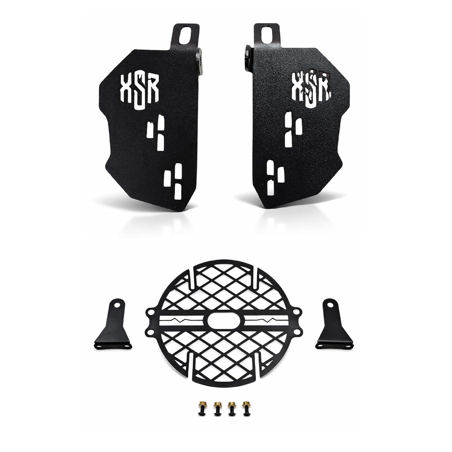 • R.J.Von one stop solution for accessories.Vehicle Compatibility: Yamaha XSR 155. The Metal Headlight Cover With Footrest, It helps to protect you Headlight Grill. Impervious to rush, will look like new after washing. Made with good quality for long life and better protection in crash situations. This New type Headlight Grill With Footrest adding style to the overall look of the Motorcycle's Headlight and Footpads. Relax You Foot With The Heavy Footrest. Suitable for-Yamaha XSR 155.