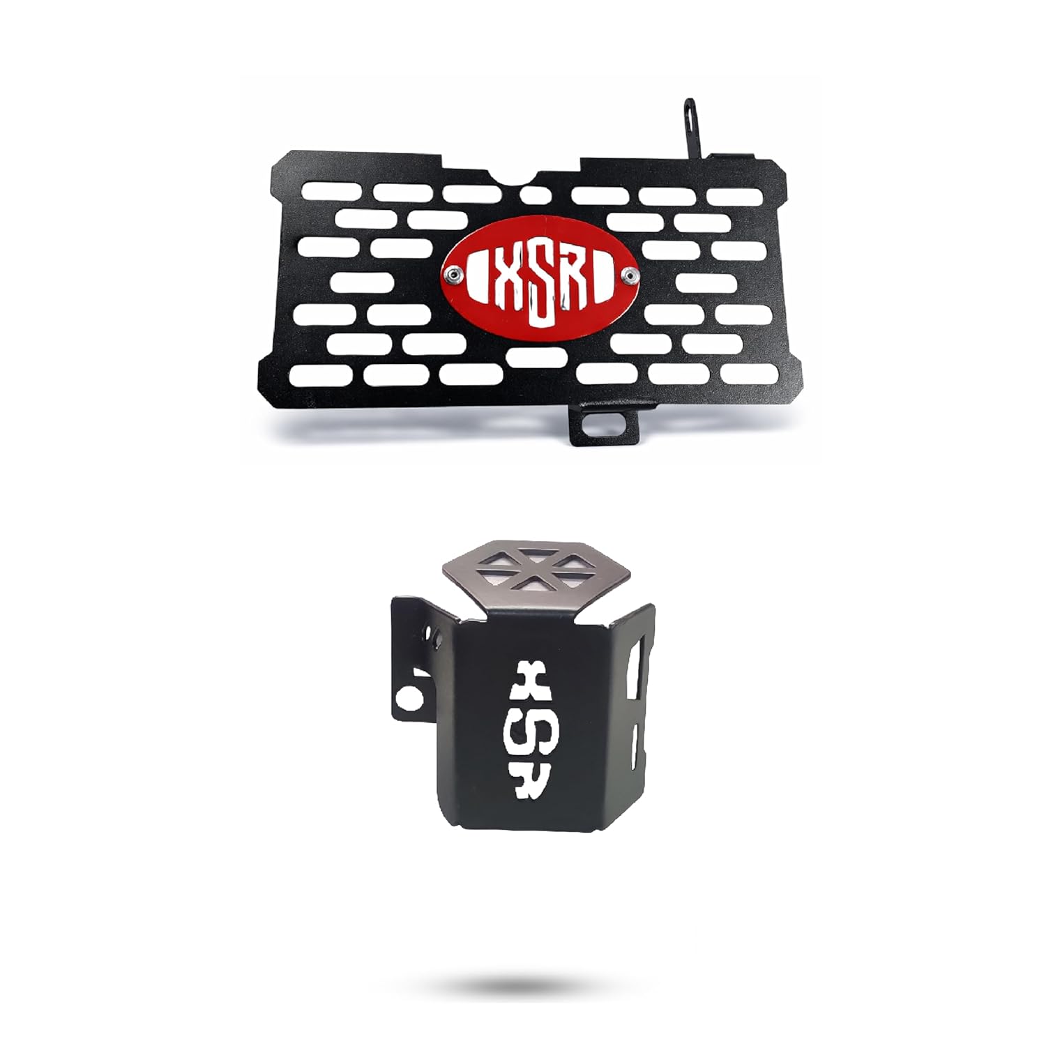 • R.J.Von one stop solution for accessories.Vehicle Compatibility: Yamaha XSR 155. The Metal Radiator Grill With Rear Disc Oil Container, It helps to protect you radiator from sand or stone damage. Impervious to rush, will look like new after washing. Made with good quality for long life and better protection in crash situations. This New type Radiator Grill With Rear Disc Oil Cap adding style to the overall look of the Motorcycle's radiator and engine. Suitable for-Yamaha XSR 155.
