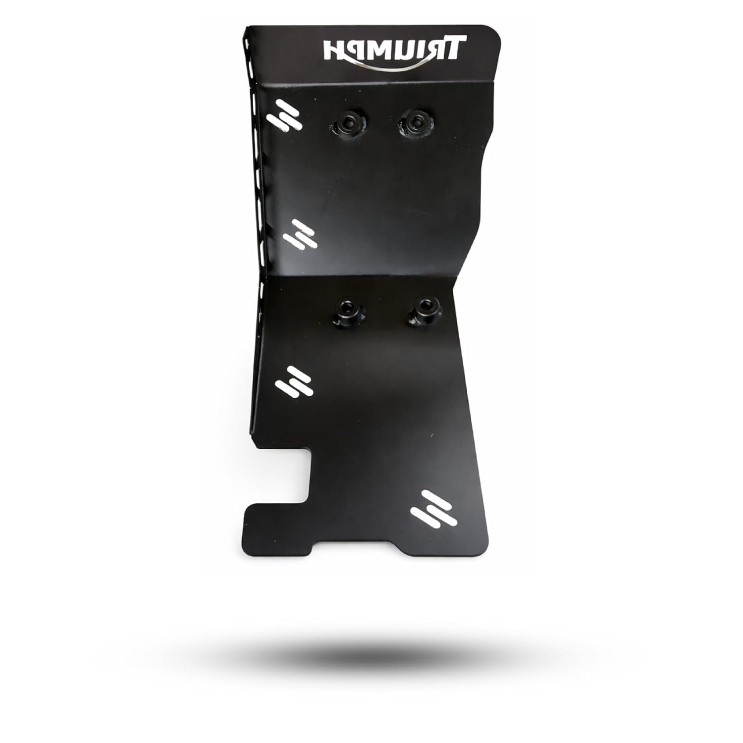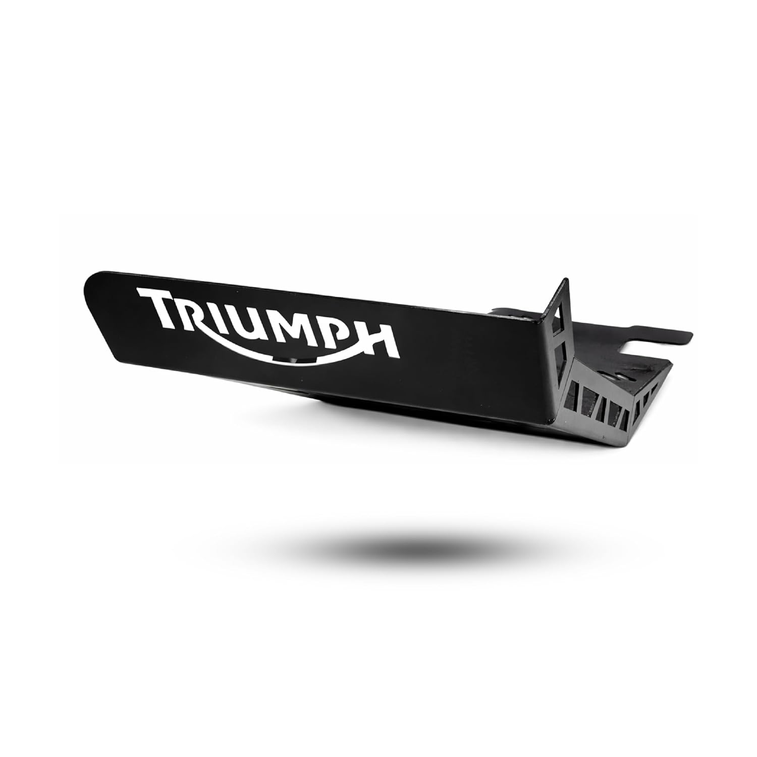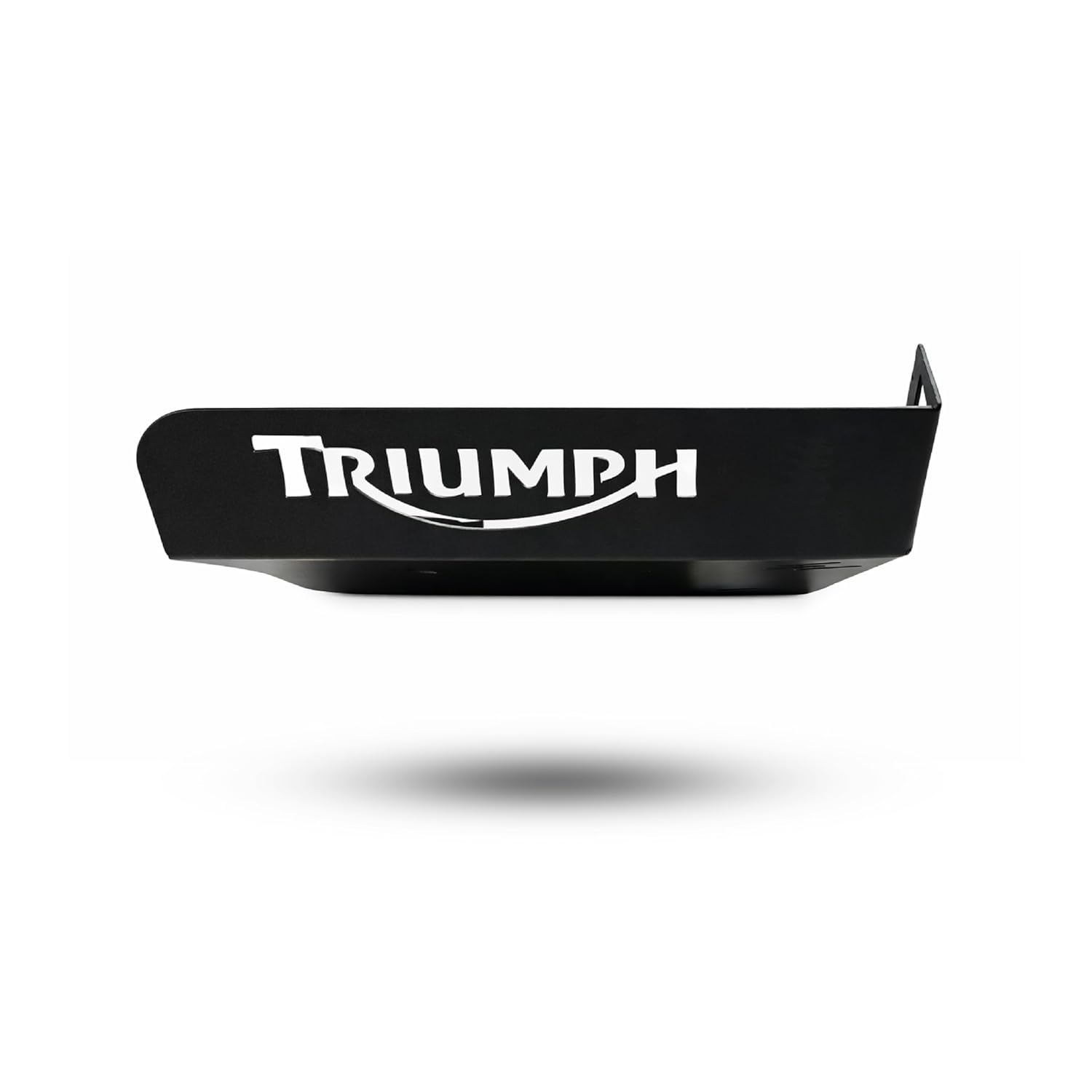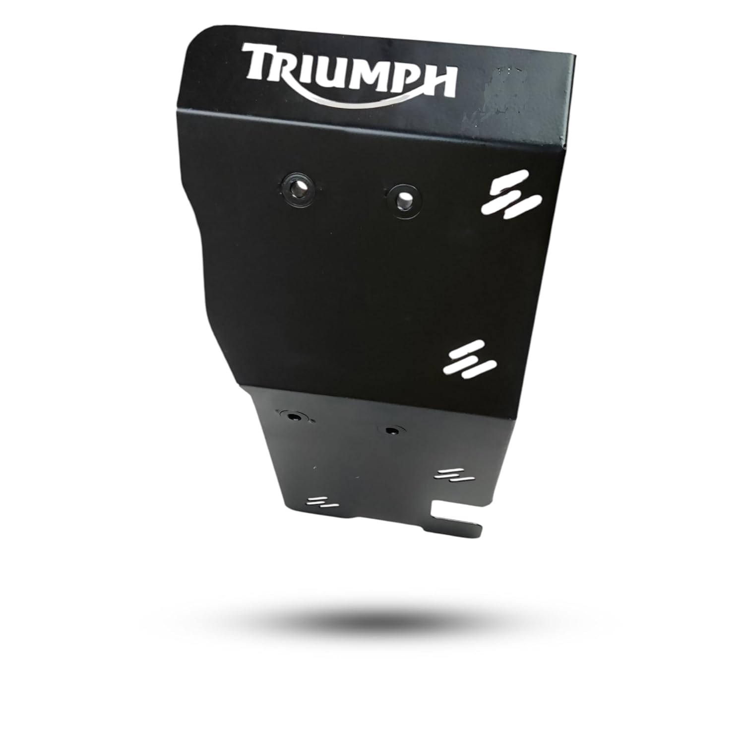 • R.J.Von one stop solution for all automotive accessories. Engine guard Triumph 400 Sump Guard is made with premium quality Aluminium ,long lasting and anti rust coating gives long life. Protects your engine from dirt and mud and any damage during crash, enhances the protective measure of engine. Also allows Engine guard. Standard design with logo of bike on  gives a great look and proper protection to your engine.